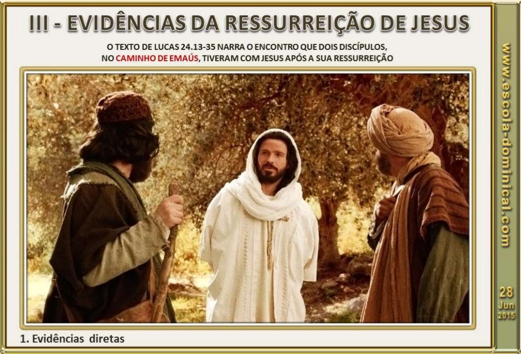 Depois de ressuscitado, Jesus aparece a muitos. É domingo, 16 de nisã, e os discípulos estão desanimados. Eles não compreendem por que o túmulo está vazio. ( Mateus 28:9, 10; Lucas 24:11) Mais tarde naquele dia, Cléopas e outro discípulo vão de Jerusalém para Emaús, que fica a uns 11 quilômetros de distância. No caminho, eles.
