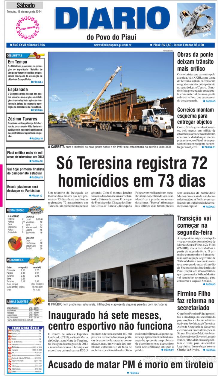 Capa Diário do Povo do Piauí de 20140315