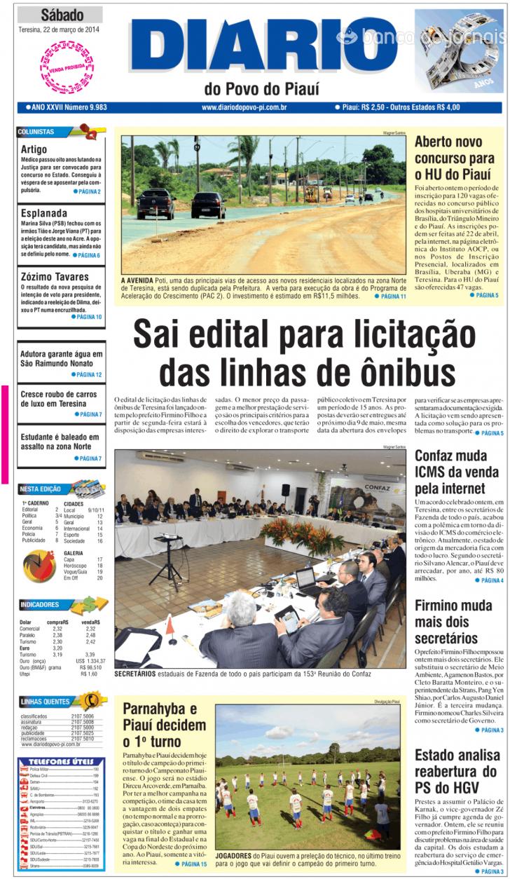 Capa Diário do Povo do Piauí de 20140322