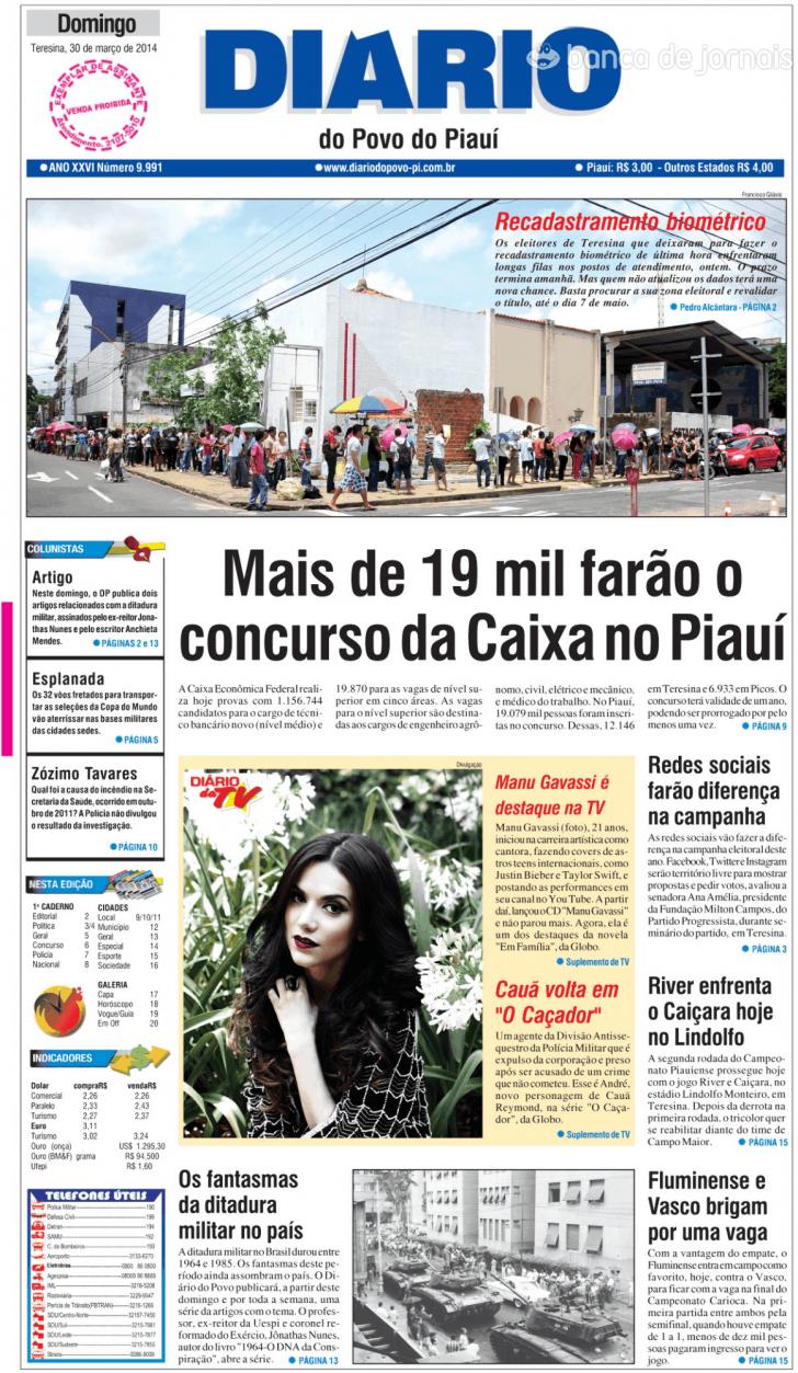 Capa Diário do Povo do Piauí de 20140330