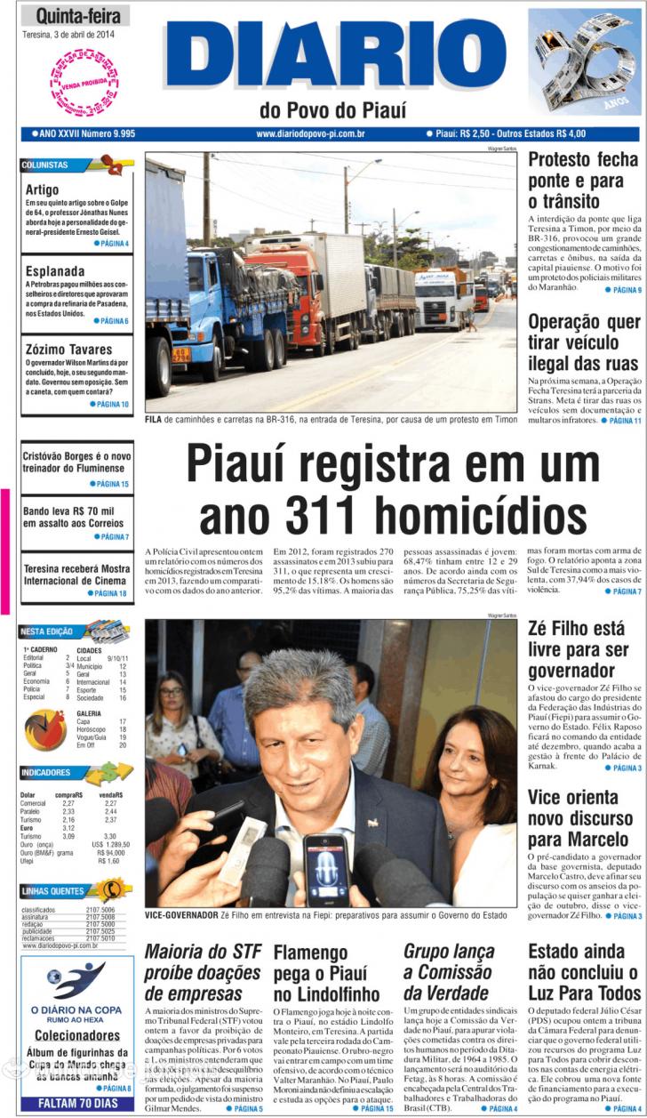 Capa Diário do Povo do Piauí de 20140403