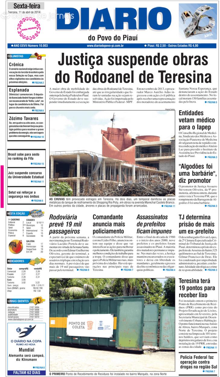Capa Diário do Povo do Piauí de 20140413