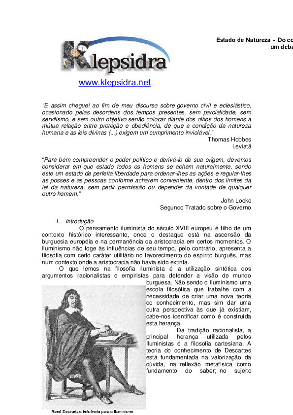 (PDF) Estado de Natureza Do conceito de Hobbes ao de Locke um debate de ideias Camila