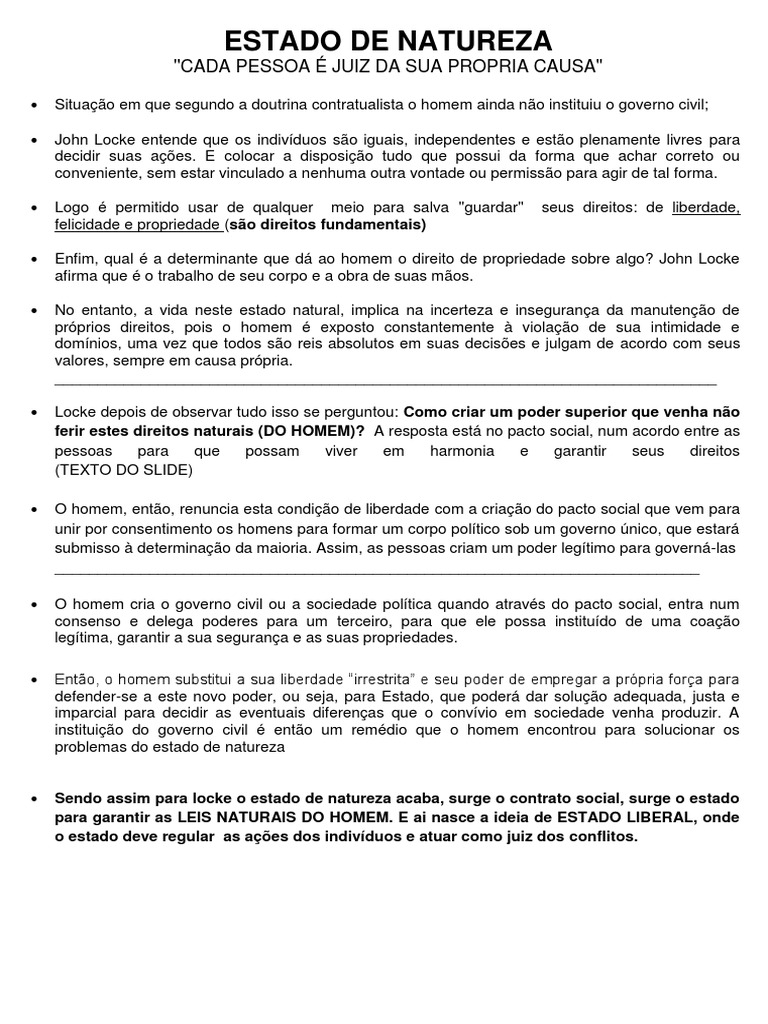 O Estado de Natureza em Hobbes, Locke e Rousseau Toda Matéria