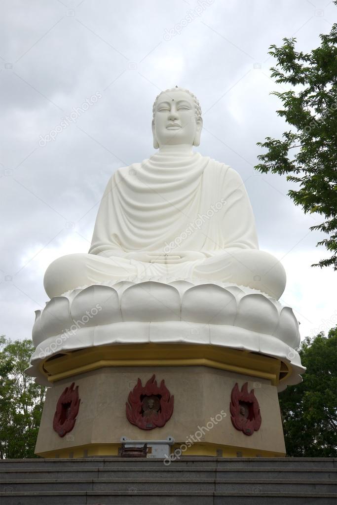 Estátua gigante de Buda sentado o pagode Sean longo, dia nublado. Nha Trang, Vietnã
