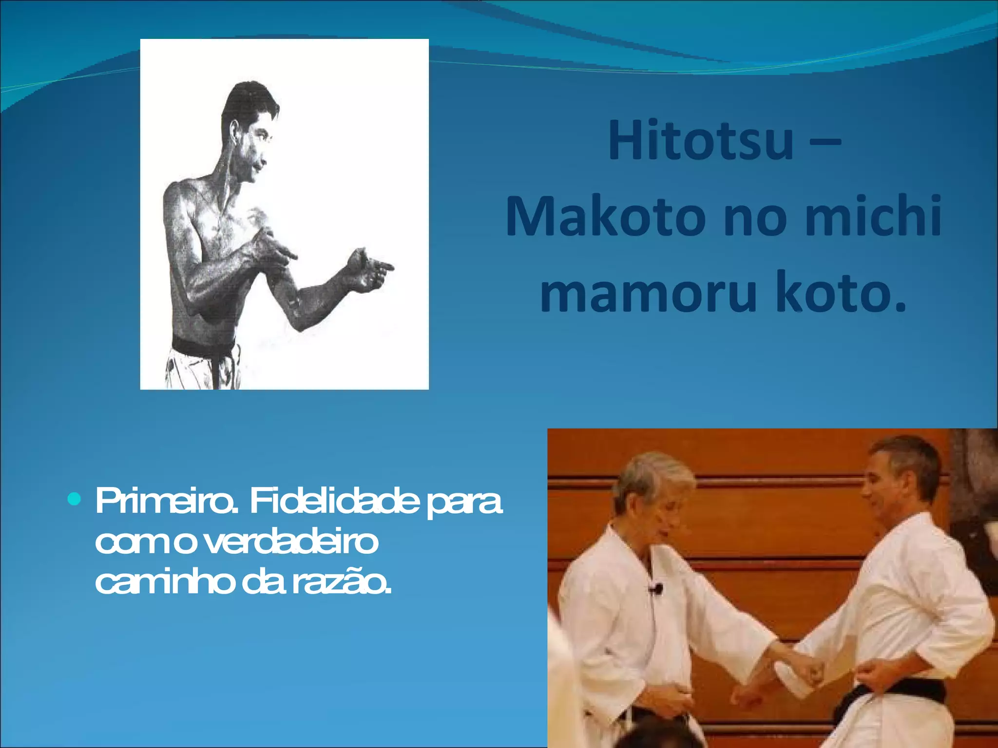 Os 5 Lemas do Karatê. LEMAS DO KARATÊ. HITOTSU JINKAKU KANSEI NI TSUTOMURU KOTO. (SEMPRE - ESFORÇAR-SE PARA A FORMAÇÃO DO CARÁTER) HITOTSU MAKOTO NO MICHI O MAMORU KOTO. (SEMPRE - FIDELIDADE AO VERDADEIRO CAMINHO DA RAZÃO) HITOTSU DORYOKU NO SEISHIN O YASHINAU KOTO. (SEMPRE - CRIAR O INTUITO DO ESFORÇO)